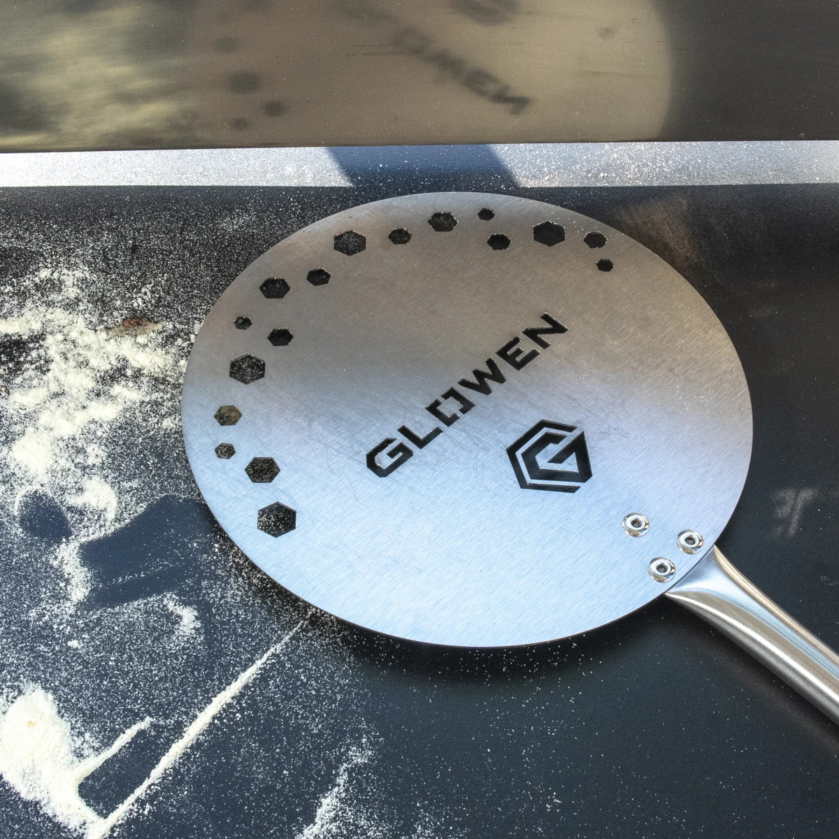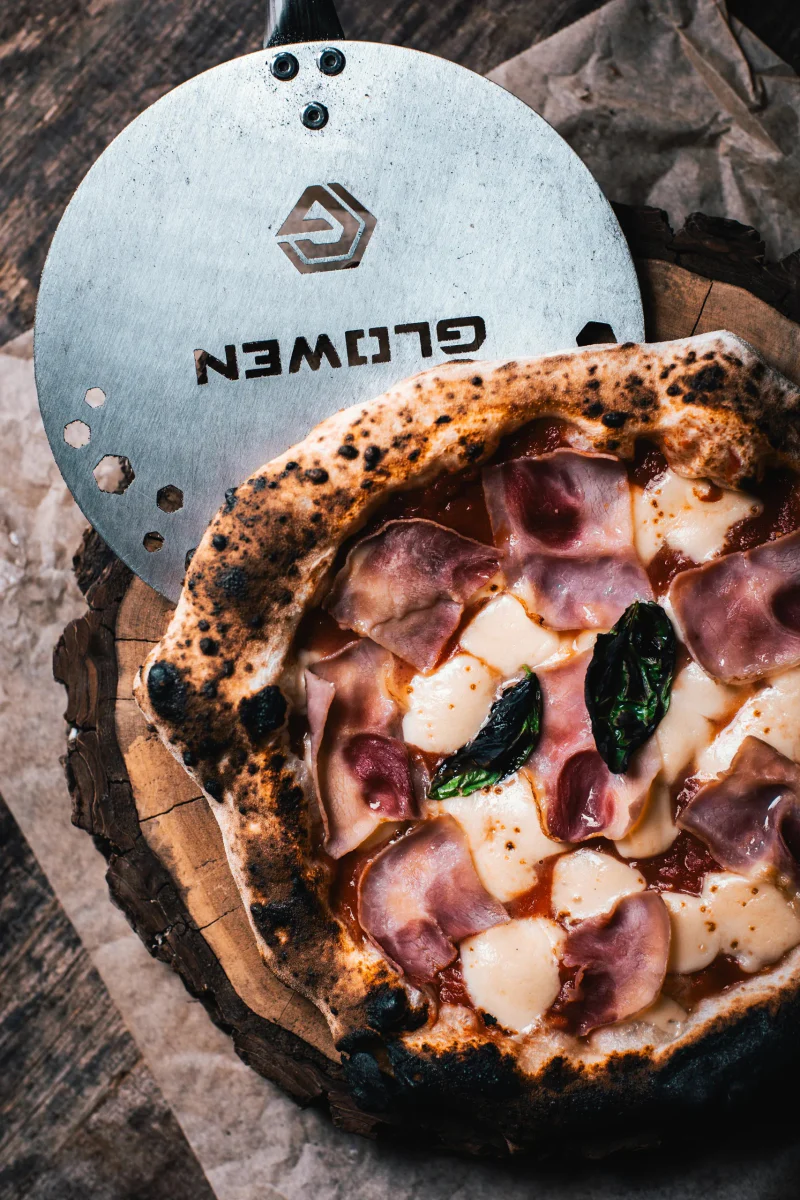 Łopatka obrotowa służy do obracania pizzy w piekarniku.